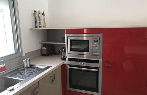 - Equipped kitchen: table, chairs, bar, induction hob, oven, microwave, dishwasher, coffee makers (filter, capsule, fridge, kettle, toaster ...)