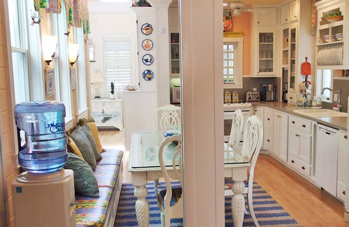 With it's quaint picket fence and over-sized wrap around porch, 'SEALINK' offers so many places to relax and enjoy the gulf breezes. On the screened porch, you will find comfortable seating, swing, gas grill, and dining table for just kicking back after a day on the beach or entertaining your family and friends. Even the sound of the rain on the porch roof from an occasional summer shower makes reading a good book read better.