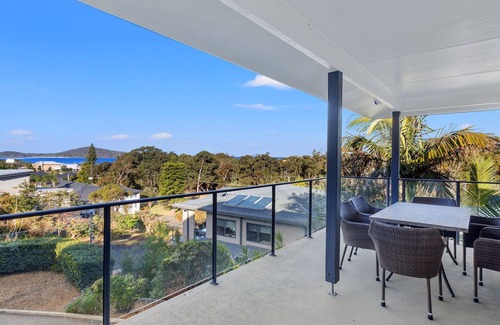 Island View: Family Home with Pool & Scenic Ocean Views | House in Fingal Bay, Australia