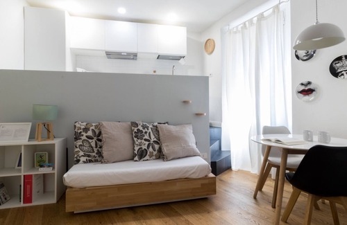 Pasubio 12 is a comfortable studio apartment with a Nordic style, perfect for business and leisure stays. The Studio is located in Milan on the second floor. Pasubio 12 enjoys a strategic position. The Studio is reserved for non-smokers, and is equipped with air conditioning, wifi and washing machine. The kitchenette is equipped with dishes, crockery and the main appliances: oven, dishwasher and kettle. The sleeping area consists of 1 double bed in the living area, and can accommodate up to 2 people. . City Tax: € 6,30 per person per night to pay at check-in for a maximum of 14 nights