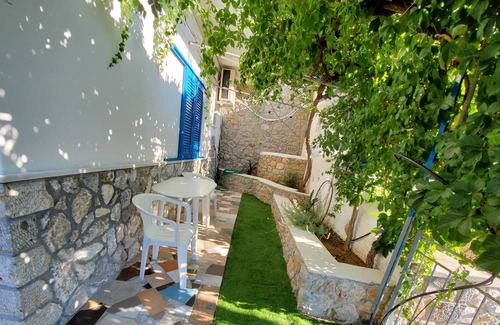 The JUNIOR HONEYMOON SUITE is 37m2 . It has a double bed with mattress by Freshcool 30cm high with memory mattress topper and memory pillows , a nice comfortable sofa-bed and fully equipped kitchen with a fridge, hotplates, a microwave, a toast maker, a kettle, a coffee maker, an espresso maker, kitchenware, an iron, an air condition, a hairdryer, a safety box, a plasma 32" satellite tv on wall, a closet, mosquitoes screens to the windows and a free wifi. And a toilet with a shower and hot/cold water. Outdoor there are new garden furniture in a beautiful garden with an excellent view to Telendos island.