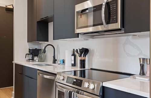 This one-bedroom, top-floor corner apartment features a bright and inviting living room. Fully equipped with everything you need to feel at home, it includes a modern, fully stocked kitchen, smart TVs in every room, and cozy beds. With all the amenities you need for a comfortable stay, it’s the perfect space to relax and unwind.