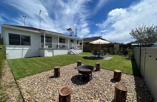 Salty opens out onto a sunny patio and outdoor dining space which overlooks Mummaga Lake. The firepit area is the perfect place to enjoy a drink and roast marshmallows on those beautiful balmy south coast nights. The backyard is level, safe and secure for your pets and little ones to run around in. We ask that all pets remain outside during your stay to ensure no damage is done to the property. The house may not be suitable for large, active or multiple pets. Please note all pets (type and number) must be declared upon booking.