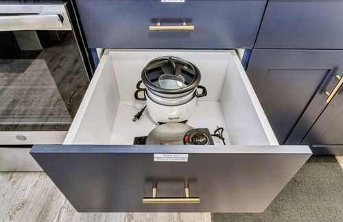 Upon entering our beguiling apartment, you will be greeted by a thoughtfully-curated interior with a functional layout, radiating a warm homely vibe. The inviting living room, dressed in soothing hues, houses a 4K Ultra HD TV with Roku apps and a twin XL fold-out bed for extra accommodation. Curl up on the soft couch after a long day of exploring, soaking up the tranquility of our abode.
