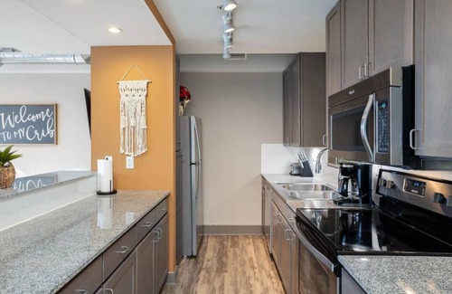 This 1 bedroom, midtown apartment provides both a great downtown location and a quiet and comfortable space. With 700sf and a dedicated workspace, this is a perfect place for business and leisure travelers to call home. One dedicated parking space in the garage, along with Wifi✔ netflix✔ washer/dryer✔ Cookware & utensils are all provided. The apartment is also 1 block from the Uptown Theater! Please reach out with any questions