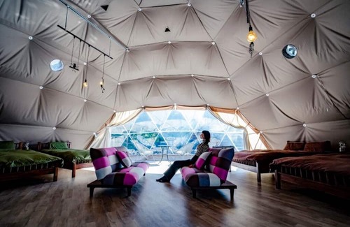 A 10m diameter big dome tent imported from Europe that is highly recommended by Foresta Aso