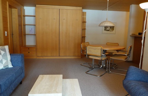 54 m2. More information by the provider: 2-room apartment in an apartmenthouse in the centre on the Kronenplatz. Relax in your holiday in a quiet area and enjoy the sunset from the terrace. The apartment has an own parkinplace and ski deposit. The entry to the apartment in the house 6B by the underground parking of Coop or from the Kronenplatz.