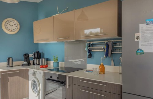 Inside, a spacious, bright, and welcoming living area awaits you: a large cozy lounge, a friendly dining space, and a modern fully equipped kitchen (dishwasher, induction cooktop, refrigerator, drip coffee maker, and Senseo machine).