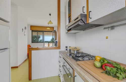 Inside, the property is airconditioned and enjoys a bright, open plan living space furnished with a comfortable sofa, a flat-screen HDTV and a dining table. This area also incorporates a well-equipped kitchen fitted with; a Mokka coffee machine, a cooker hob, an oven and a fridge freezer.