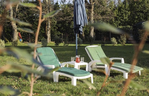 "La Tingère", 4-room house 108 m2, south-west facing position. Spacious, comfortable furnishings: large living/dining room with TV (flat screen). Exit to the terrace. Small office. 1 room with 1 french bed (1 x 140 cm, length 200 cm), hand-basin and shower. 1 room with 1 french bed (1 x 160 cm, length 200 cm), hand-basin and shower. Kitchen (oven, dishwasher, 3 induction hot plates, toaster, kettle, microwave, freezer, electric coffee machine) with dining table. 2 sep. WC's. Floor heating. Terrace 40 m2, large garden 600 m2, south facing position and west facing position. Terrace furniture, barbecue, deck chairs (4). Facilities: washing machine, iron, hair dryer. Internet (WiFi, free). Parking (fenced 2 cars). Please note: non-smoking house. 1 small pet/ dog allowed. Smoke alarm. Offer by a private individual according to Art. 155, IV of CGI. 4413100016921
