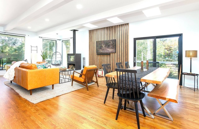 Nestled on a quiet lakefront in Hillsborough, NC, this retreat offers the best of peaceful nature and small-town charm. Just minutes away, downtown Hillsborough is known for its historic district, art galleries, and locally loved restaurants. Outdoor enthusiasts will love hiking trails at Eno River State Park and nearby riverwalks, while those seeking city attractions can reach Durham and Chapel Hill in under 20 minutes. With easy access to universities, breweries, shops, and RDU Airport, the home is perfectly located for both relaxation and exploration.