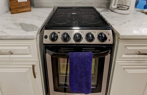 - Fully-equipped kitchen with cooktop, compact oven, microwave, refrigerator, Keurig & Drip coffee makers available