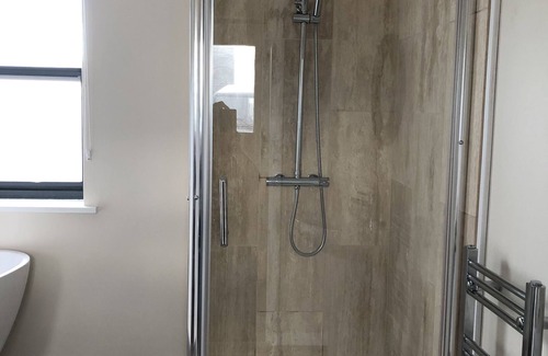This property has been converted into a one bed holiday apartment from an ex RAF bomb disposal wet room. It is now a luxury holiday rental with one king size room, a lounge/kitchen with sofa bed, and a bathroom with both shower and bath tub. It also benefits from air source heating and air con.