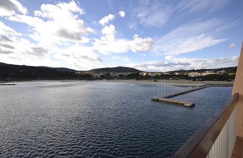 With a view that you never tire of, you will stay on the 3rd floor, without lift, of a residence with swimming pool on the Port of Bormes. This accommodation, ideal for 6 people, consists of an entrance with cupboard serving an independent kitchen with washing machine, dishwasher and its access to the main terrace, a living-dining room with a sofa, a single bed and a TV, a beautiful terrace with a view overlooking the sea, the beach and the coast. A long hallway with wardrobe and storage serving an independent toilet, a bathroom with window, a first bedroom with a double bed and a window, a second bedroom with its independent balcony, a double bed and two bunk beds.