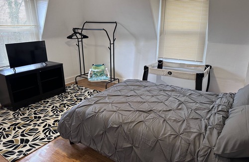 Large beautiful twin home, designed for maximum comfort with high ceilings and amble natural light. 6 large fully furnished bedrooms, with wi-fi and cable. Located in the Historic Germantown section of Philadelphia. Close to transportation, shopping centers, and parks. Large kitchen, washer/dryer on-site and very cozy porch to sit and enjoy the outdoors, as well as outdoor picnic/bbq area with hammock. Two off -street private parking spots with each rental.