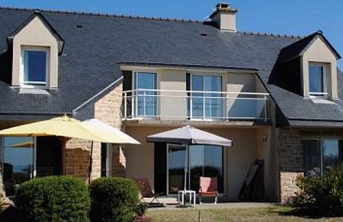 A pleasant family home that can accommodate 12 people, boasting superb ocean views. A spacious living room with an open kitchen welcomes you, perfect for sharing convivial moments. On the ground floor, you'll also find a utility room, a master suite with a double bed and an en-suite shower room, and a separate toilet. Upstairs, you'll find four bedrooms: one with two single beds (90cm wide and can be twinned), one with a double bed (140cm wide), one with two single beds (80cm wide and can be twinned), one with four single beds (90cm wide and two of which can be twinned), a bathroom, and a separate toilet. Outside, you'll find easy parking. On the south-facing side, enjoy the garden and terrace, savoring the view and the sound of the waves below.