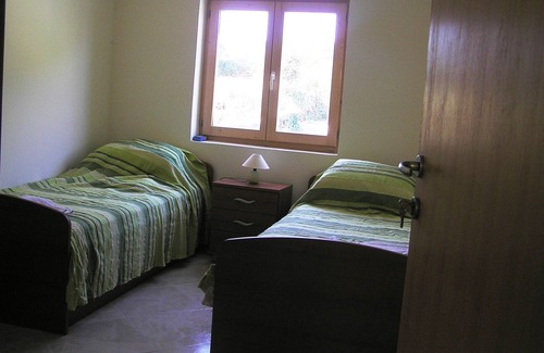 Downstairs, there are two double bedrooms (both en-suite with shower), two twin bedrooms and a double (movable) futon. They sleep 9. All the bedrooms have fans and mosquito plugs. Bedlinen and towels are provided. There are 2 more a\c units at this level. There is also a family bathroom with bath and shower and a heated towel rail. All 3 bathrooms have bidets. There is a spacious entrance hall, a study area and two utility rooms. In the utility rooms there are a washing machine, second larder fridge, iron, ironing board, 2 drying racks, hairdryer, barbeque equipment etc. The study area has over 400 books (in English), including travel guides and local histories. Free internet access is available throughout the house