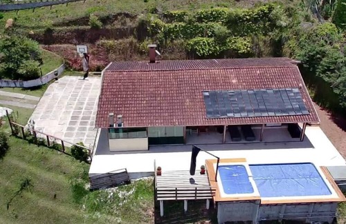 Yes, this Jardim Europa ski chalet has a swimming pool. Check the Facility Overview section for details about the pool and other available facilities.
