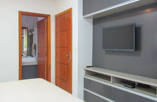 - Na suíte há 1 cama queen size, aquecimento, chuveiro elétrico e box de vidro