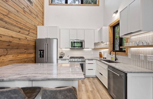 The cabin boasts spacious rooms, a beautifully appointed interior, all the modern amenities to make your stay comfortable. Relax in the cozy living area, hot tub overlooking the river, or the fireplace, or whip up a delicious meal in the fully equipped kitchen. TVs in each room & patio, washer/dryer, expansive windows, patio fire pit table, games, & many other amenities to make your stay enjoyable. Enjoy falling asleep to the soothing sounds of the river, & wake up refreshed, ready for another adventure.