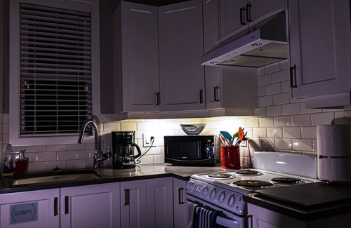 Your suite has high quality finishings such as quartz countertops, under cabinet lighting and Italian 12 x 24' porcelain tile in the bathroom and even high end Grohe faucets!!!