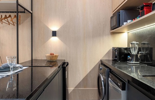 This 1-bedroom, 1-bathroom rental features air conditioning and a water dispenser. Connect to the free WiFi, or get cozy in front of the Smart TV. Bathroom amenities include a hair dryer, towels, and toilet paper. The kitchen is equipped with an oven, a stovetop, and a refrigerator, as well as a coffee maker, an electric kettle, and a microwave. And you can even pack a bit lighter because there's a washer and dryer. Other amenities include bed sheets and an ironing board.