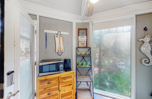 The home’s unique layout creates a flow from room to room that cannot be matched. The open-air kitchen is equipped with all you need to prepare home-cooked meals or snacks for the beach. A leather sofa and a smart TV welcome casual downtime and movie nights in the living room. Free WiFi, streaming, central air-conditioning, and a private washer/dryer. Rest in the rocking chairs or take a bike ride around the island and stop at the nearby waterfront QuarterDeck for fresh southern cuisine at the base of the Harbour Town Lighthouse. It’s all waiting for you!