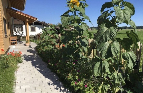 This cozy and comfortable holiday apartment is located on the upper floor of a house completed in 2021 in the municipality of Buching/Halblech, very close to Neuschwanstein Castle and Hohenschwangau Castle. Ecologically sustainable construction (solid wood, solar energy, air-source heat pump) creates a unique (allergy-friendly) indoor climate. In summer, you can enjoy a magnificent view of the Allgäu mountain panorama from the spacious balcony; in winter, the crackling fire of a Swedish stove warms you after a long ski tour. The apartment also features high-quality furnishings and a fully equipped kitchen. The spacious living-dining area is flooded with light during the day, and in the evening, a sophisticated lighting design creates a cozy atmosphere. We are happy to serve you a personalized breakfast, paying attention to regional products and plastic-free packaging when purchasing groceries.