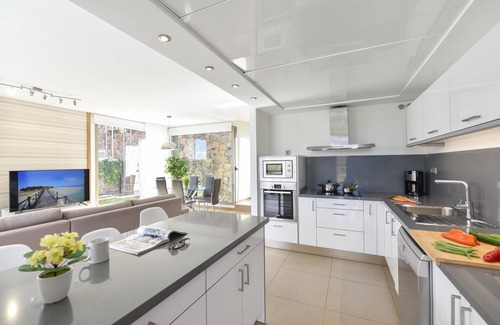 This holiday home has been recently renovated and it is equipped with all necessary features for a carefree holiday. A wonderful and modern kitchen with oven, dishwasher and washing machine, open to a convenient dining area and a comfortable living room with Smart TV from where you will be able to access the amazing private garden and heatable swimming pool (surcharge).