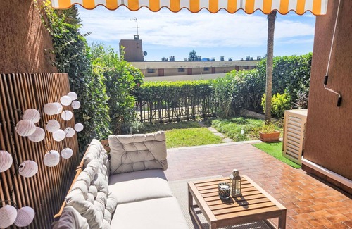 The unit comes fully equipped with various amenities to ensure a comfortable stay. These include a washing machine, a hair dryer, and complimentary WiFi internet access. Additionally, there is a patio area measuring 10 square meters, with a partially covered section and a small garden area. Outdoor furniture, such as terrace furniture and deck chairs (2), is provided for your convenience. Reserved, covered parking is also available for your use during your vacation.