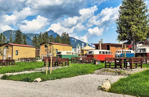 The "Tiny Haus Glockenalm-Chalet Wendelstein" is a 3-room mobile home with a total area of 33 square meters, spread across two levels. It is designed to accommodate a maximum of 2 adults and 3 children, offering tasteful and cozy furnishings throughout. The living/dining room features satellite TV and air conditioning for your comfort. There is one room with a double bed measuring 160 cm wide and 200 cm long.