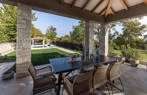 Villa Faturi is a modern stone villa with a private pool, wonderful panoramic views and a beautifully manicured garden. The interior of the villa is modern and designed with attention to detail. On the first floor there is a spacious living room, a dining room and a kitchen. There are also two bedrooms with double beds and two bathrooms. On the second floor there are two bedrooms and a bathroom as well as a balcony with views of the surrounding area. In the garden of the villa there is a terrace overlooking the pool and garden. Here you can enjoy a delicious meal outdoors. The large private pool provides refreshment on hot summer days. The sun loungers around the pool invite you to relax. Garden maintenance takes place every Thursday The villa is located in a quiet area near the village of Kringa. Kringa is located in central Istria and is only five kilometers away from Tinjan, the second largest village in the municipality of Tinjan. There was once a settlement on the site of the village of Tinjan in the Iron Age, which later developed into a Roman fortress. There are other villages in the hilly surroundings. The beautiful landscape of this region is ideal for horse riding, cycling and walking. Nearby is the beautiful town of Porec and many enchanting Istrian beaches. There are also numerous historical sites and other attractions to explore. From Porec you can take a boat trip to Venice. Pula, the largest city in Istria, and the Brijuni National Park are only 45 minutes away from the villa. The location of Villa Faturi is ideal for a relaxing vacation in central Istria.