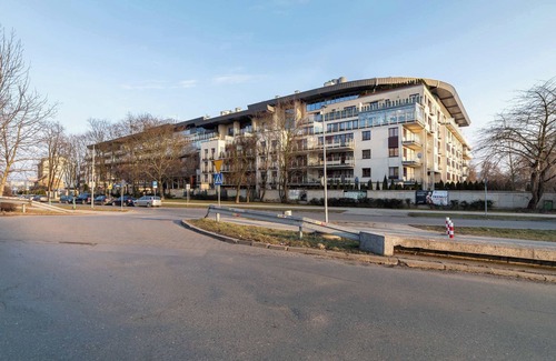 The apartment is located in a new, luxurious apartment complex at Ludwinowska Street. The estate has a playground, a place to store bicycles and beautiful garden gazebos. The location is distinguished by a unique character - it is a place full of greenery right next to the Vistula Boulevards. The area is filled with commercial and service establishments, Polish pubs and restaurants from all over the world. The abundance of greenery and relaxing recreational areas (Bednarski Park located less than 1 km from the apartment) and the proximity of the city center (2.5 km from the Old Town Square) allow guests to fully enjoy the charms of Krakow. Quiet and peaceful neighborhood, designed to provide respite from the hustle and bustle of the city. The location is perfectly communicated. It is distinguished by an extensive urban infrastructure. There are numerous bus and tram stops nearby, as well as train stations enabling comfortable travel around Krakow - the Kraków Podgórze station is 2 km away from the apartment, and the nearest bus stop - 250m.
