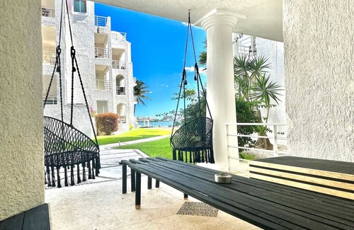 Nestled within a picturesque gated community in Cancún's most coveted Hotel Zone, this stunning 2-bedroom, 2-bathroom villa is the epitome of luxury and convenience for an unforgettable stay. Located right on the waterfront and on the first floor for effortless access, the villa offers you direct entry to the serene beauty of beachside living and Cancún's renowned vibrant nightlife, all within walking distance.