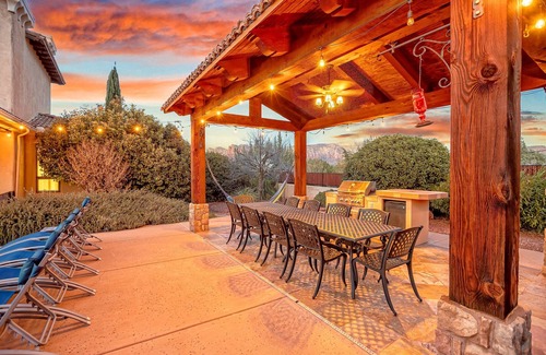 Luxurious 7BR Sedona Estate | Private Pool & Spa | Panoramic Red Rock Views has 7 Bedrooms , 6 Bathrooms, and max occupancy of 16 people. The minimum rental for this property is 1 nights, but this can change depending on the season you plan on staying. Previous guests have given good rated it, and VRBO labeled it a top-rated House because of the excellent services rendered by the owner or manager of this House, and has consistently provided great experiences for their guests. Most families or guests that use it recommend it to their friends and some of them are repeat guests. House has a friendly neighborhood, and the Oak Creek has interesting places to visit. If you want to learn more about the House in Oak Creek, such as places to visit and things to do nearby, you can check below to learn more.