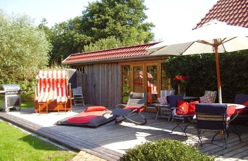(more than 1,000 words) something interesting and they say YEEEEESSSSS - that's it. Maybe on B. We've set up our 'hide-out' so that we can arrive and let go at any time - because who wants to spend the first few days of vacation 'getting the place in shape'? For us, this includes a complete set of furnishings. From A - for alcohol - (there's a bar that each guest refills to their liking), to B - for cutlery (knives, forks, spoons, plates - and everything that belongs in a modern household, including toilet paper) to Z - for matches for the fireplace or even a 'fence area...'. Let us know if you think we've forgotten something important...we're open to suggestions. Seriously, we'll spare you the usual lists and brand name dropping - those come a little later in the description anyway - just be patient. Our house is approximately 130 m² in size, features a cozy open-plan living and dining area, four bedrooms, one full bathroom with a bathtub and shower, and a separate toilet in the attic. The approximately 1,500 m² property is landscaped – at the front, with a driveway, a carport, and a lawn with a stone terrace – and at the rear, with a secluded garden (bordered in wickerwork, typical of the region), a wooden terrace, and a sauna extension. Garden lighting, a gas grill, garden furniture, loungers, and everything else you might need to enjoy the whole experience in a relaxed manner – we promise. The house is quietly located on the outskirts of Tating. Sankt Peter-Ording is within 8 km, where you can enjoy all the wonderful things a North Sea spa town has to offer – and, of course, go and drive to the wonderful beach. But you've probably already done some research on the internet. You can find out more about the information we can provide further down in the descriptions - excursion destinations, etc. Please don't forget - to make your holiday really enjoyable (unforgettable in the best sense of the word...), we would like to point out at this point (quite untypical of all the raves you've already read and those still to come) that the North Sea can sometimes have really crappy weather - unfortunately, even in summer. We can't influence this either - and it never really bothered us - when we were here, we wanted to be in exactly this place - flat land, ebb and flow, harsh climate - the North Sea, after all... So - that's it for now - all that remains for us to do is wish you lots of fun. If you're interested in a holiday on the North Sea, you might discover something interesting when reading about our experiences or looking at the pictures (we'll say so soon).