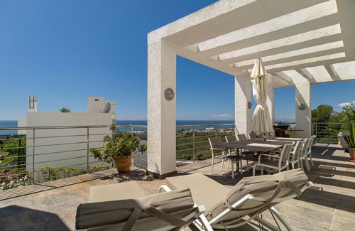 Treat yourself to luxury and comfort in this spacious holiday home with pool and sea view.