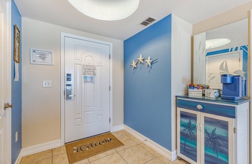 Step into coastal luxury at our beautifully designed 2-bedroom beach view condo, where modern comforts meet serene oceanfront beauty. Whether you're sipping coffee on the private balcony, unwinding in the elegant living area, or exploring the stunning white sands of Treasure Island, this retreat is the perfect getaway for families, couples, and friends alike.