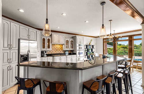 ✓ Kitchen Island with bar stools for additional seating