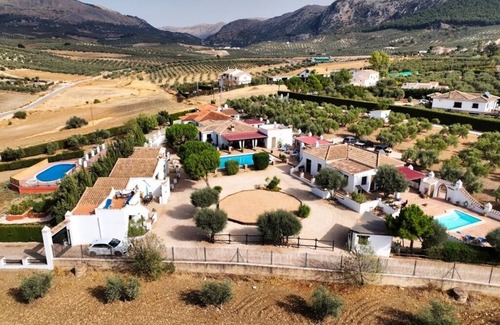 El Rancho is a luxury holiday retreat established for over 15 years, set in the heart of the Andalucian countryside, surrounded by 4 acres of private organic olive groves, with views of pine clad mountains. We offer 3 luxury self catering villas. Our 2 bedroom villas also have 2 bathrooms (a rare find). All Villas have their own fibre optic WiFi connection, ideal for digtal nomads. The villas are beautifully designed with private terraces and are totally independent. There are 2 swimming pools (the main pool is 20ft x 40ft) with vast terraces and numerous comfortable sun beds with cushions and umbrellas and side tables. There is ample space so families and couples can easily have their own zones. Also we have seperate shaded areas, with large communial wooden dinning furniture and a lounge area with rattan sofas, a prefect place to share a glass or two with new friends. There is a heated jacuzzi. (available April - October) All the villas have private dinning and sunbathing terraces, with wooden table and chairs complete with gas BBQ (ideal for dinning El Fresco) and have been individually designed and lovingly furnished in a typically Andalucian style, to the highest standards. The villas are equipped with their own eco friendly pellet burners to give heating during the cooler months. An ideal retreat for couples and families of all ages anytime of the year, seeking a relaxing holiday. El Rancho is also a registered organic olive farm with exclusive equestrian facilities, we do not offer horse riding on site but we are more than happy to arrange horse riding for our guests at a local professional riding school. (riding needs to arranged in advance). We have a childrens swing frame and petanque area.