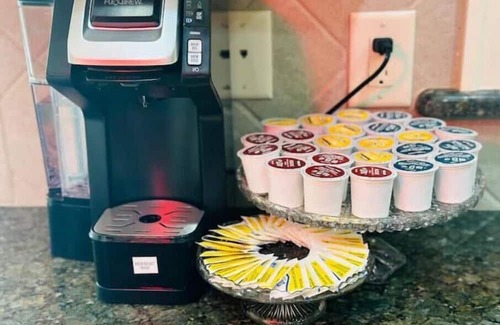 Once you open the front door, you'll be impressed by the 8 round columns and the massive gorgeous painting on the ceiling in the center of the house. You'll notice the entire house has 10 feet or higher ceiling. The living room has a sofa and love seat, a 65 inch Samsung 4k smart TV that steams Youtube TV live or watch 100+ family friendly DVD movies, and Sony CD player that's connected to crystal clear homemade speakers. If you like classical music, you are in luck!