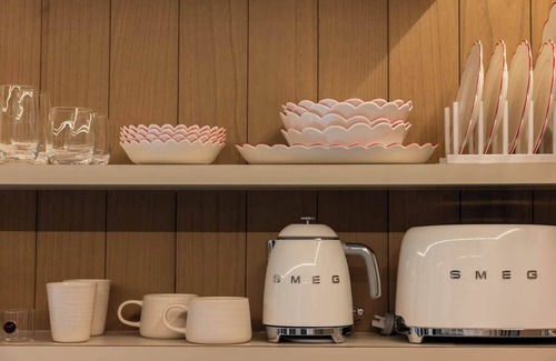 Smeg toaster & kettle, Nespresso machine and coffee pods, T2 tea, Bobby soft drinks.