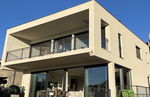 Escape to Villa Sea Horizon, your Dalmatian oasis near Split. This 3-bedroom, 3-bathroom Villa consists of two floors connected with a floating stairs. It offers modern luxury with en-suite bathroom, walk in en-suite dress room a fully-equipped kitchen, and a spacious living area . On the ground floor there is a living room with kitchen that make 70 m2 of space, a bathroom and a work area. On the first floor there are three spaces rooms fully equipped with bed linen and a stunning panoramic view of the Mediterranean Sea. Also on the first floor are two fully equipped bathrooms one en-suite, and a walk in en-suite dress room.