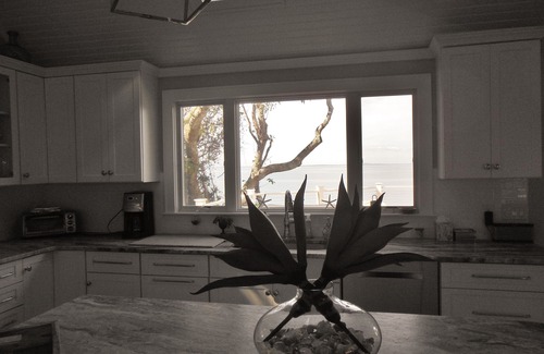 Enjoy spectacular sunsets from the deck overlooking Buzzards Bay. This waterfront/beachfront home located in the exclusive neighborhood known as ''The Cliffs'' offers privacy with amazing oceanfront views set high on a bluff overlooking the ocean. With an open floor plan filled with oceanfront windows, cathedral ceilings, fireplace, TV, and internet all on a dead end road. Walk down the stairs to your own private beach or walk to the ''cliffs beach'' for residents only. Also walking distance to Old Silver Beach, one of Falmouth's best beaches. Surrounded by conservation land, this neighborhood offers privacy and seclusion even on the busiest weekend of the summer. Easy drive to downtown, ferries and many restaurants. Bike path to woods hole is a short ride away! Brand new 2017 Kitchen overlooks the water! Enjoy breakfast lunch and dinner on the deck overlooking the ocean, move along to the lounge chairs to sun a bit then end the days on the sofa and fire pit to watch the sunset right in front of you! Truly a special place you will love! Don't let the lack of reviews influence you, I don't request them from my guests...I believe vacation should mean you are not bothered by anything!