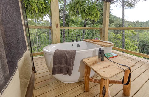 Luxury Tree Tent in Tuxedo Falls Resort with Private Waterfalls & Hiking is located in Zirconia. Luxury Tree Tent in Tuxedo Falls Resort with Private Waterfalls & Hiking provides accommodation, featuring Air Conditioner, Bedding/Linens, Wellness Facilities, among other amenities. This Cabin features Air Conditioner, Bedding/Linens, Wellness Facilities, to make your stay a comfortable one.