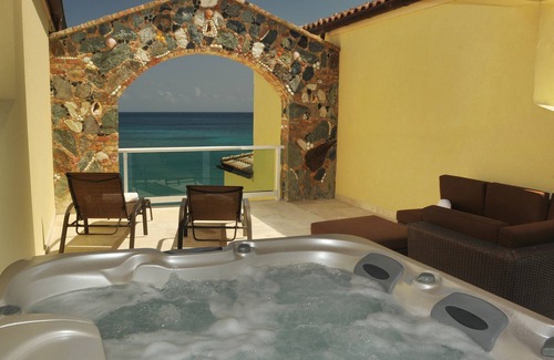 Combining Caribbean style elegance with modern design and world-class furnishings, the luxurious two-bedroom two Bathroom Spa Suites at Sea Shore Allure boasts captivating views of the ocean, a gourmet kitchen to include stainless steel appliances, wine chiller, two master bedrooms each with a plush king- size bed and en-suite bathroom with bidet, Jacuzzi tub, and rainfall shower head.