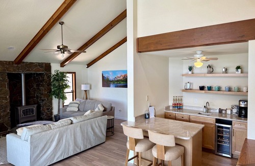 Welcome to your 3,721 sq ft newly remodeled lakefront vacation home on the shores of Pine Mountain Lake, just 26 miles from Yosemite National Park’s entrance. Designed for families and group gatherings, this luxurious five-bedroom, 4.5-bath lake house features three private primary suites, offering the perfect balance of space, privacy, and comfort.