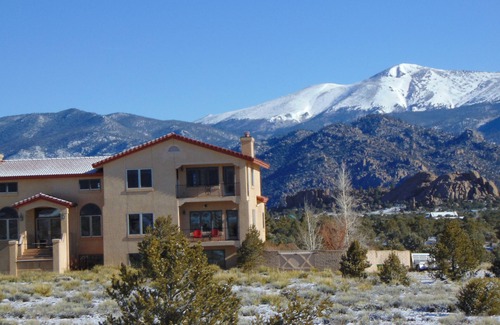 WE ARE OPEN AND DATES ARE AVAILABLE!! Located just a few miles north of the fun and trendy mountain town of Buena Vista, Co. Excellent views of Collegiate peaks and Buffalo peaks. Walled courtyard and 2 covered balconies great for sipping coffee and watching the sunrise. Located near numerous outdoor recreational adventures including shopping, art, hot springs, musical venues and dining. Hiking, ATV riding, skiing, rafting, fishing, mountain biking, four wheeling and abundant animal and bird watching are all a few minutes away from this comfortable home away from home. The open concept house allows for groups to gather yet have plenty of privacy at the same time. The property has ample room for parking- bring your toys.