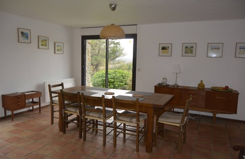The house has five bedrooms, one on the ground floor and four upstairs. The large master bedroom has a 1m60 bed, and there is room for a cot. Two other bedrooms have double beds of 140, one bedroom has a single bed, and the last one has a single bed which can be transformed into a double bed of 1m60. The bedding is new, and the mattresses are excellent. Upstairs there is a large bathroom with a bathtub and two sinks, and a separate toilet; on the ground floor, a shower room with toilet. In the utility room there is a washing machine as well as a dryer (very useful in Brittany, when the towels stay wet!). The house has a Samsung TV, DVD player and internet. There are books for your entertainment, many comics, board games and toys for children.