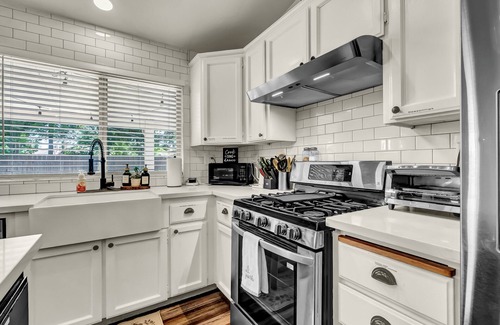 Look no further than the inviting 3BR 2Bath house, ideally nestled in the tranquil, friendly, and safe suburban neighborhood. Sleeps 5-6 people very comfortably. Entertaining home with stylish details, modern amenities, and a huge backyard + BBQ grill.